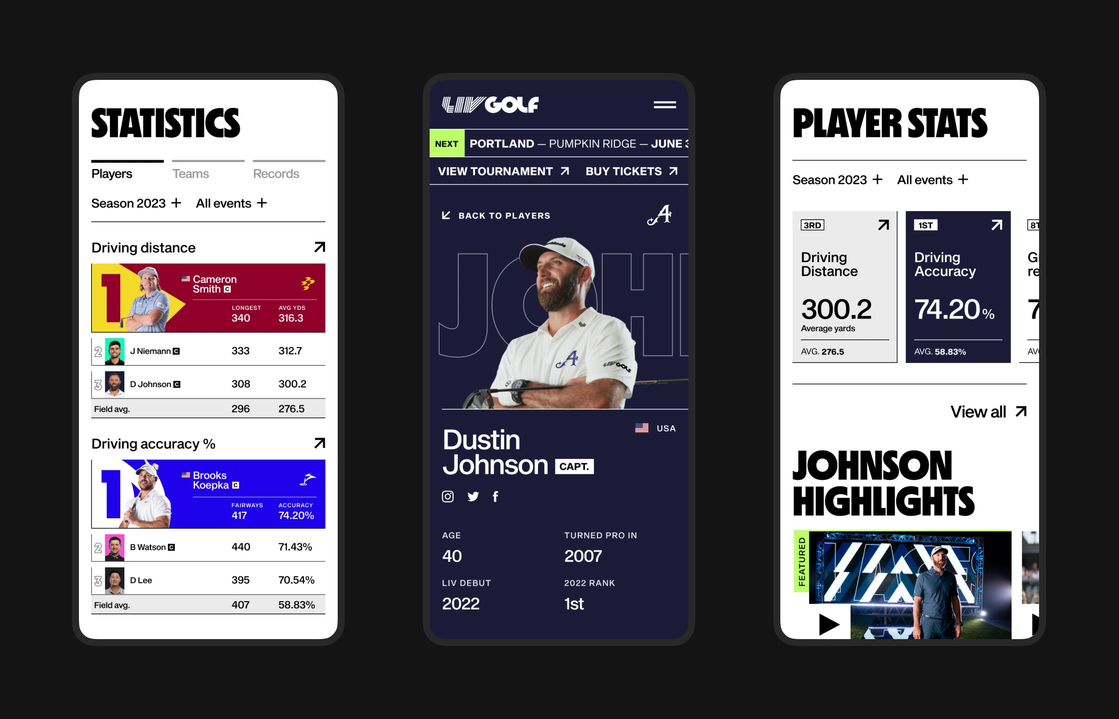 Content and features adapt dynamically across the LIV Golf League event timeline to build a season-long narrative as it moves around the world. Live leaderboards and round progression trackers enable fans to follow their favourite players in real time, while short-form videos provide behind-the-scenes access to players, reaching fans from more than 180 countries.