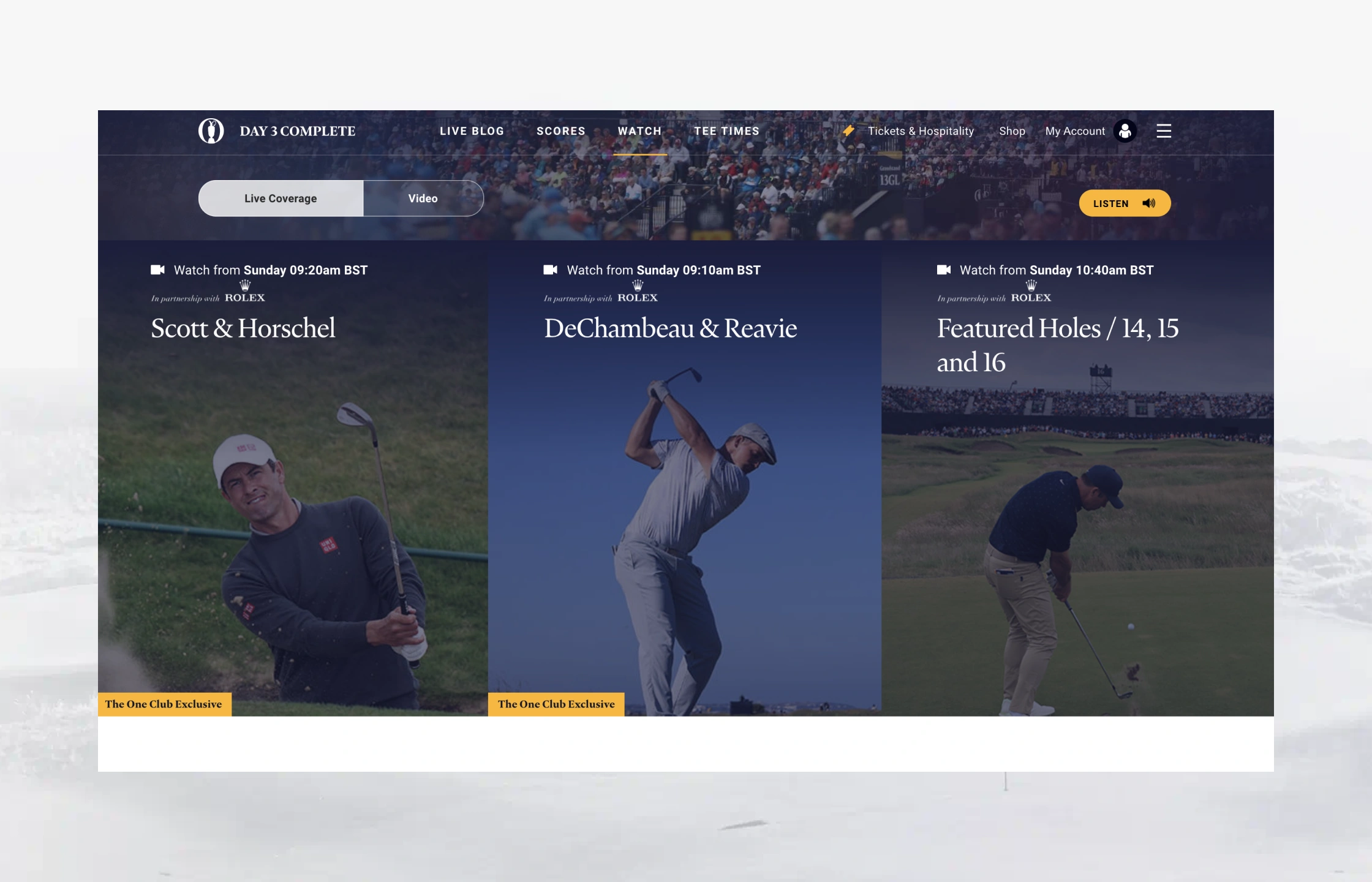 The Open TV allowed users access to multiple live on course video channels configured for individual TV rights across global markets, as well as being able to explore hundreds of highlight clips from the Championship and beyond.