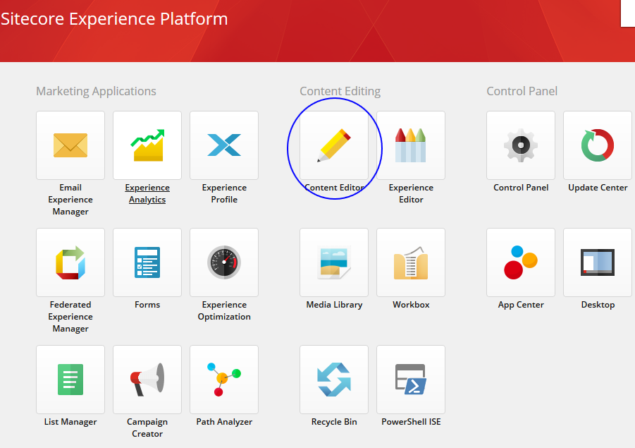 Sitecore’s content management environment is the “world of content editing”. It’s purely for content editors to access, create, amend and update content for their website. Editors can login into the “Sitecore dashboard” of Sitecore Experience Platform which provides a number of options, dependent on the editor’s role. Ultimately the “content editor” is what would be accessed to manage content changes: