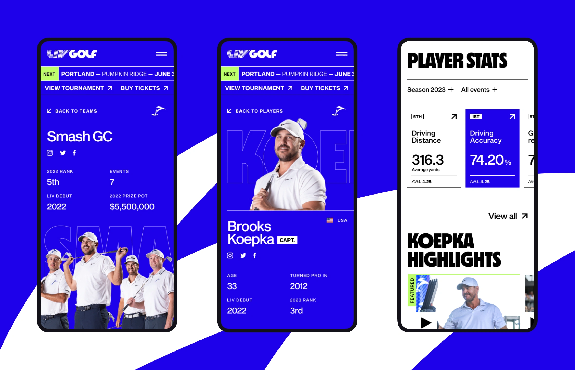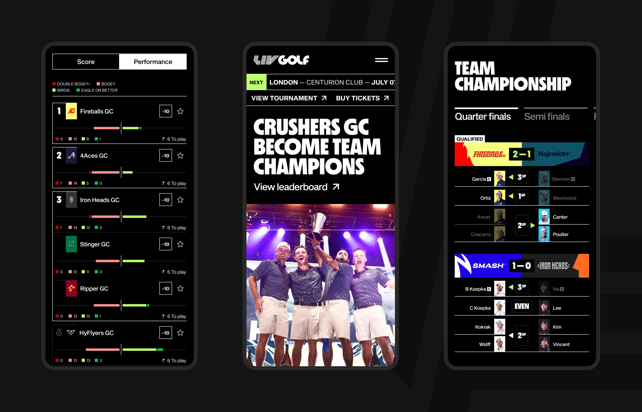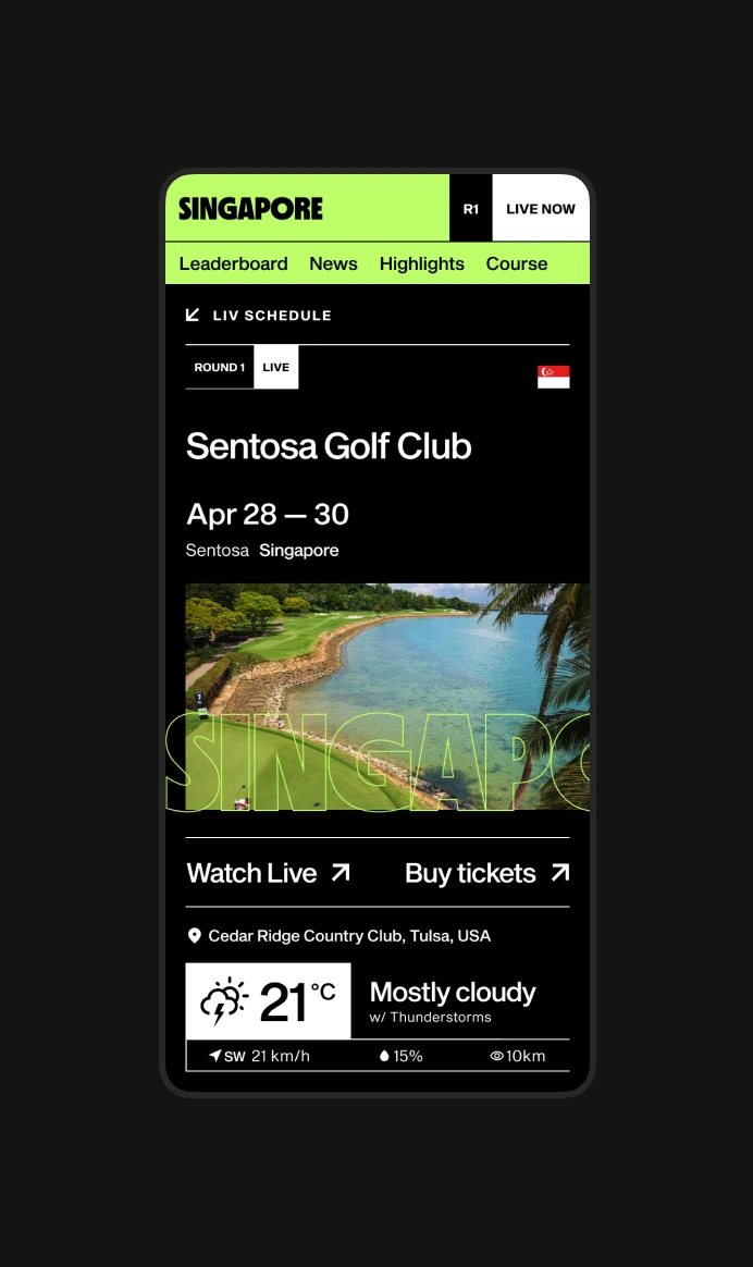 Content and features adapt dynamically across the LIV Golf League event timeline to build a season-long narrative as it moves around the world. Live leaderboards and round progression trackers enable fans to follow their favourite players in real time, while short-form videos provide behind-the-scenes access to players, reaching fans from more than 180 countries.