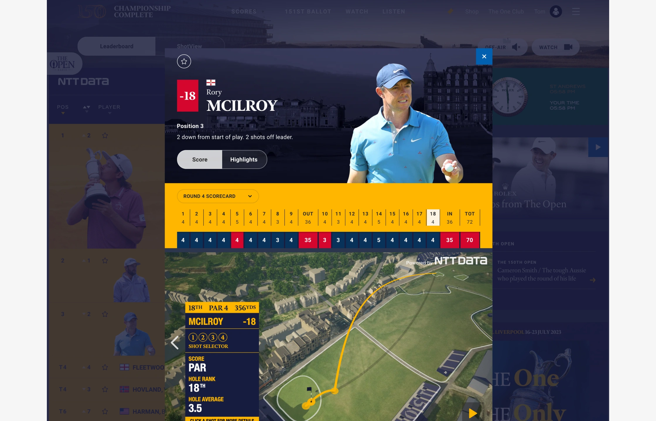 The Open TV allowed users access to multiple live on course video channels configured for individual TV rights across global markets, as well as being able to explore hundreds of highlight clips from the Championship and beyond.
